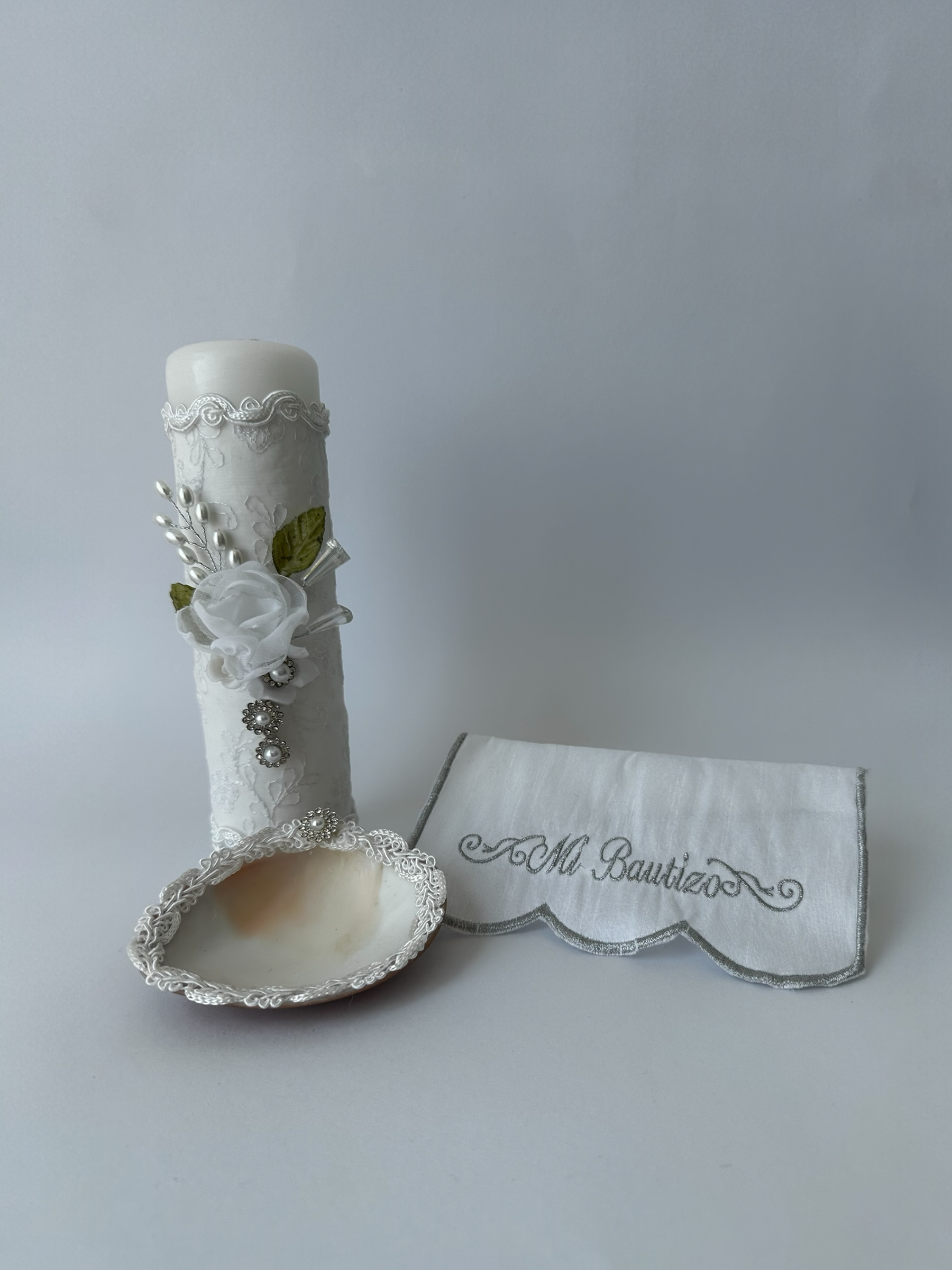 Vela de cirio de parafina con revestimiento de tela y listón.