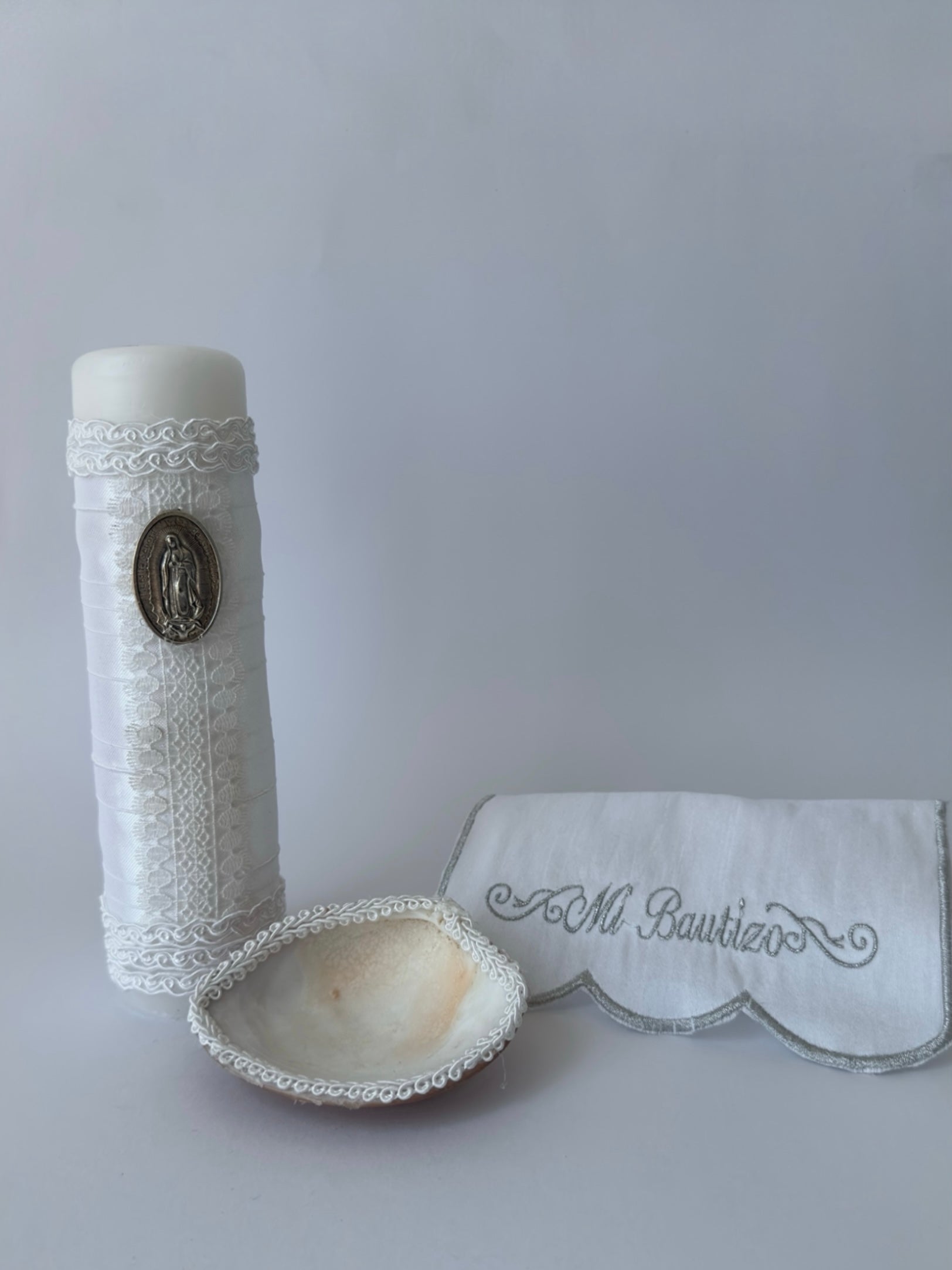 Kit para bautizo con motivo de Virgen de Guadalupe