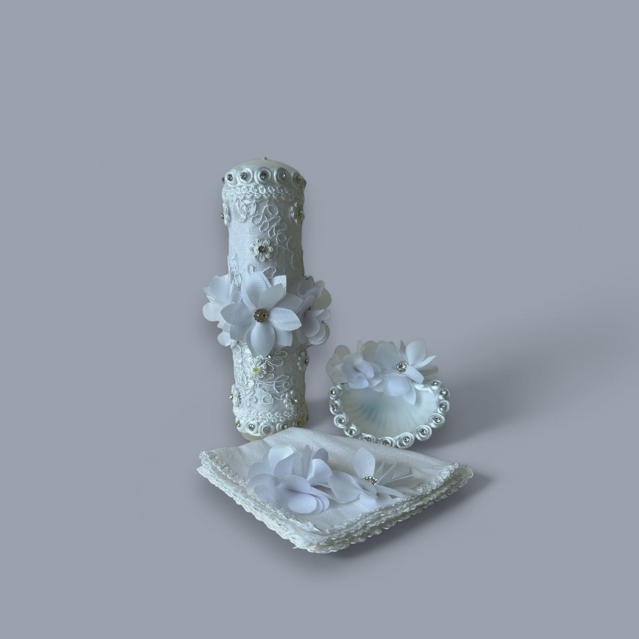 Vela de cirio de parafina con revestimiento de tela y listón.