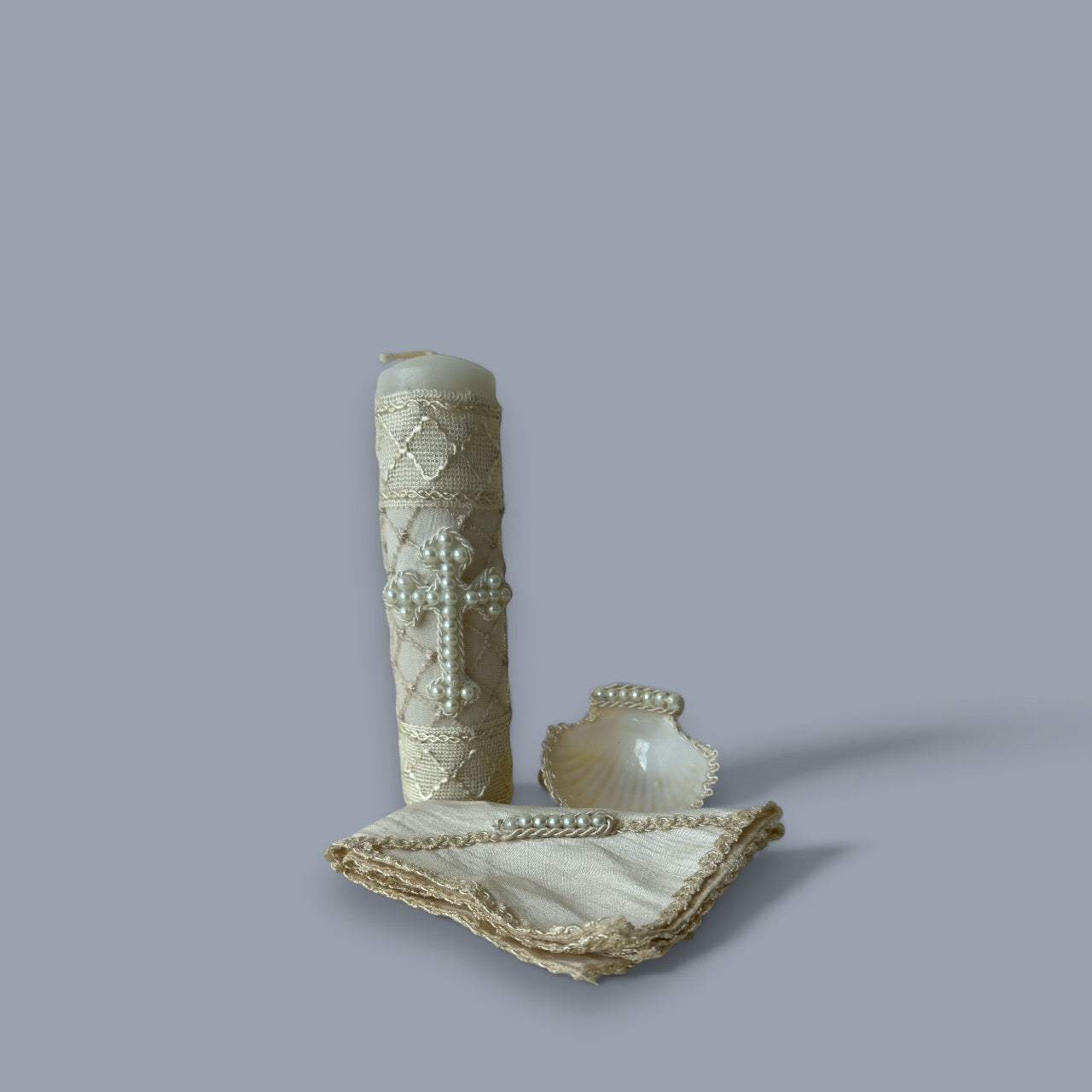 Vela de cirio de parafina con revestimiento de tela y listón.