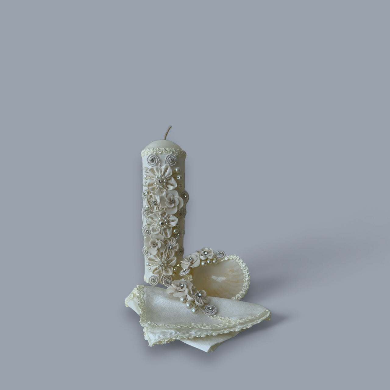 Kit de vela, concha y fe bautismal para bautizo.