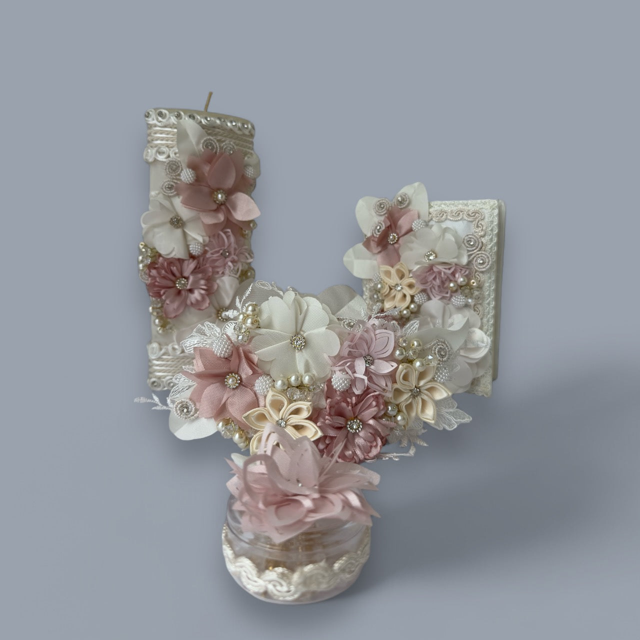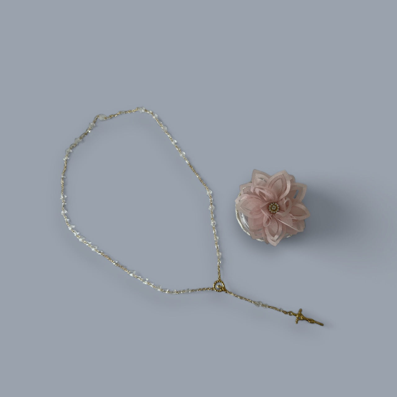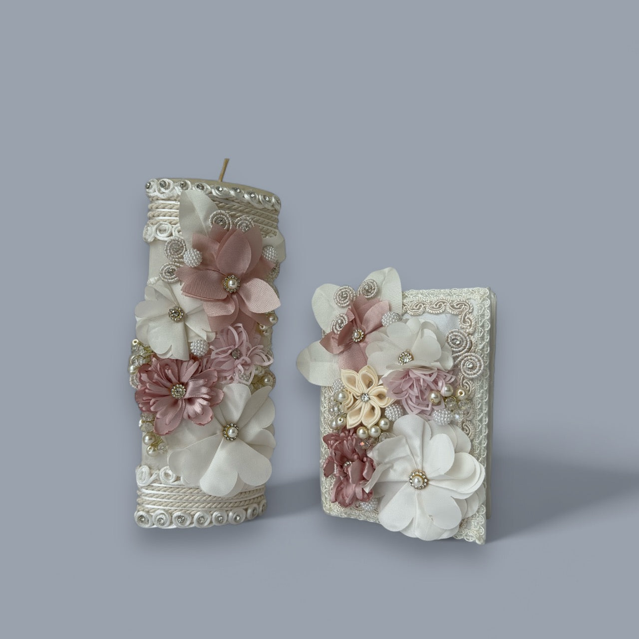 Kit de vela, Biblia, rosario, tocado y velo para primera comunión.